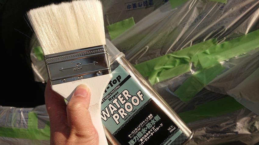 写真のハケやマスキング資材はホームセンターで入手してきたものです。