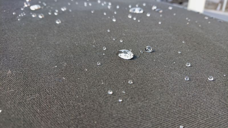 ↑ 風呂桶で水を垂らしてみた様子。驚くほど撥水しています。