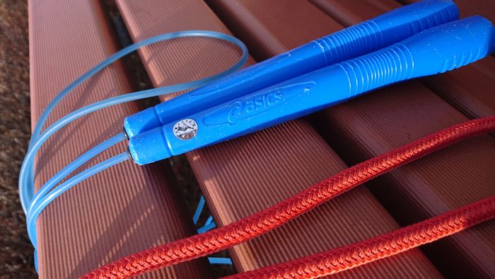 私ゃスポーツは得意ではありませんが、何故か水泳と縄とびだけは『はやぶさ』も『鳳凰』も人並みにできる子だったので、コレは父の威厳を見せつけるチャンスとばかりに青いとび縄を購入。そして数十年ぶりに二重とびを華麗に・・・・跳べない!一回も飛べない(笑)加齢で身体が思うように動かないのだ(^^;