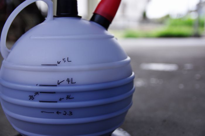 可愛らしい丸型のオイルチェンジャーは目盛りが読み難い気がします。一般的なデカい注射器みたいなタイプのほうが使い勝手良いのかもしれません。