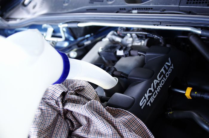 今回の投入量は4.1Lとしました。暖機運転後、レベルゲージの真ん中より少し高い位置で止まってくれたので『適切』と判断しています。