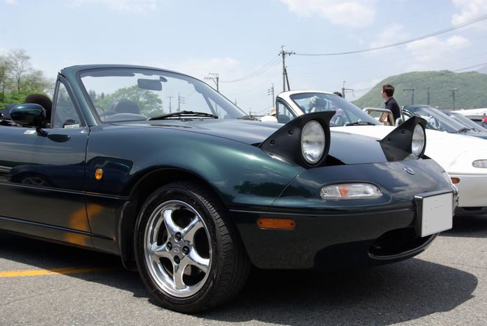 ところがユーノスロードスター(NA8)に乗ってた頃は、ロードスターとマツダを絡めたような声掛けをされる機会は少なかったように記憶しています。販売チャネルが多かったことも理由の一つなんでしょうけど、メーカーと車種を結び付けた会話はあまり耳にしませんでした。こちらからマツダの話題を出すと「それじゃひょっとしてロータリーエンジンが載ってるのかい?」って(^^;